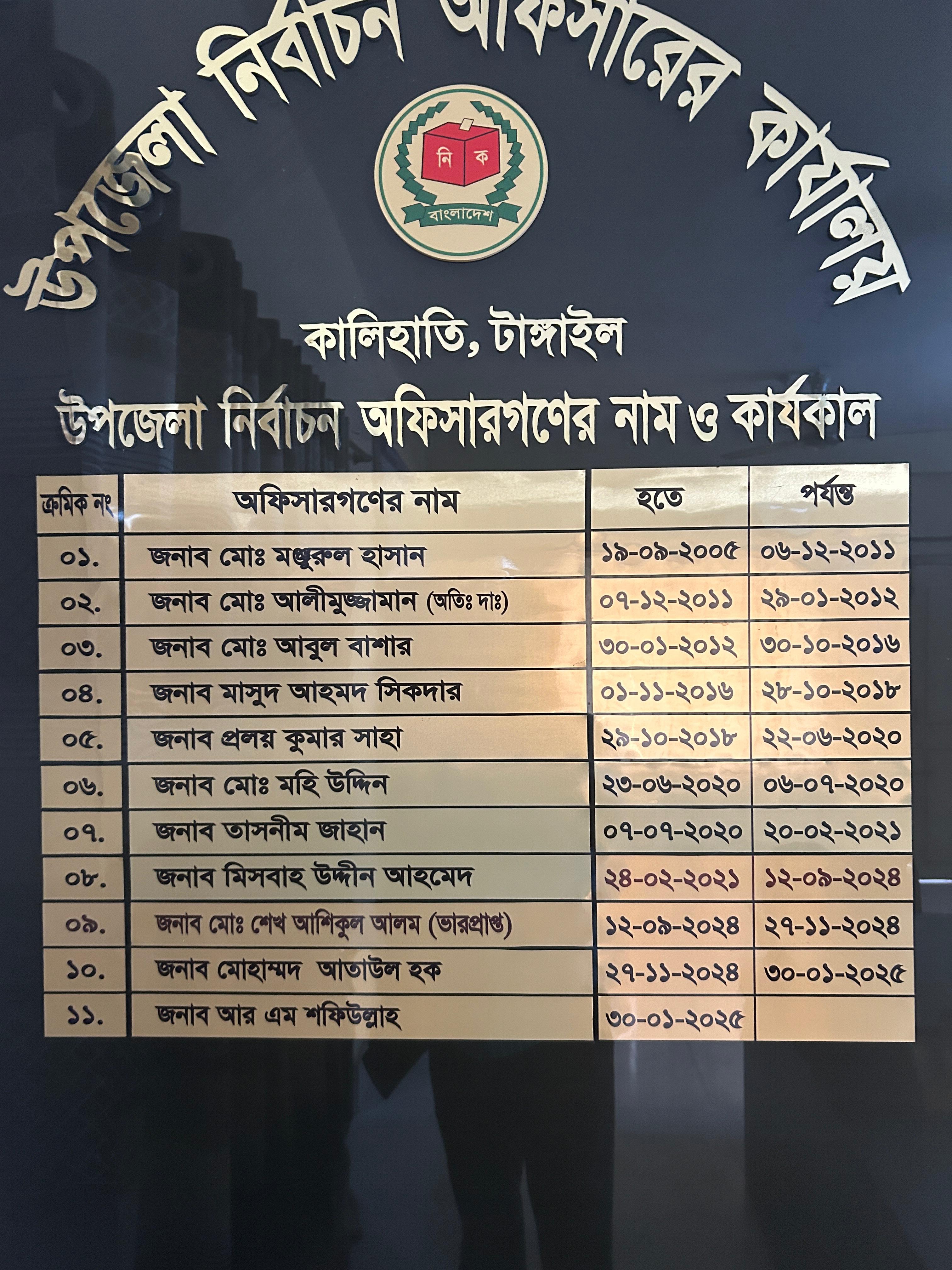 | ১০ | জনাব মোহাম্মদ আতাউল হক | 27-11-2024 | 30-01-2025 |
